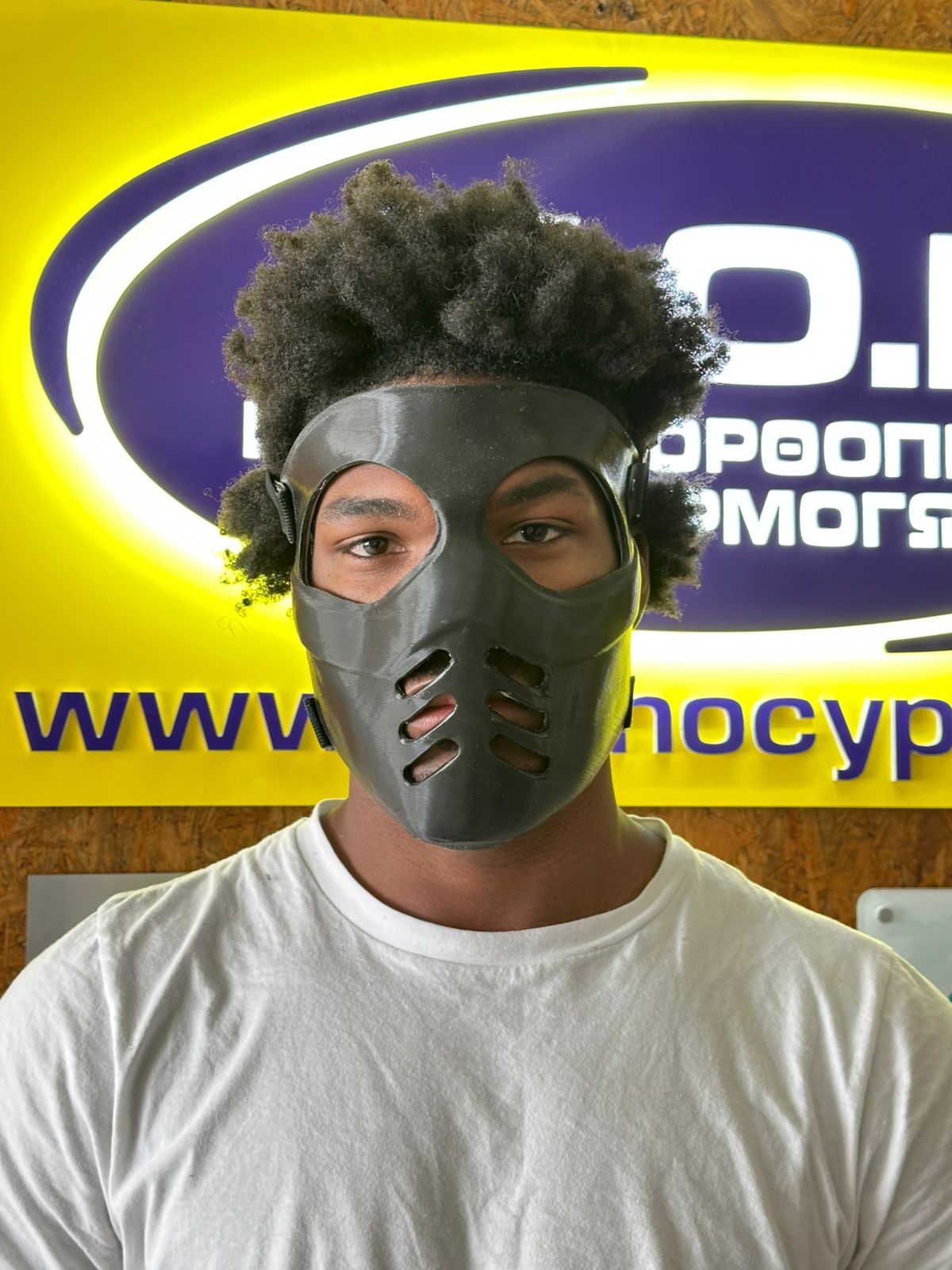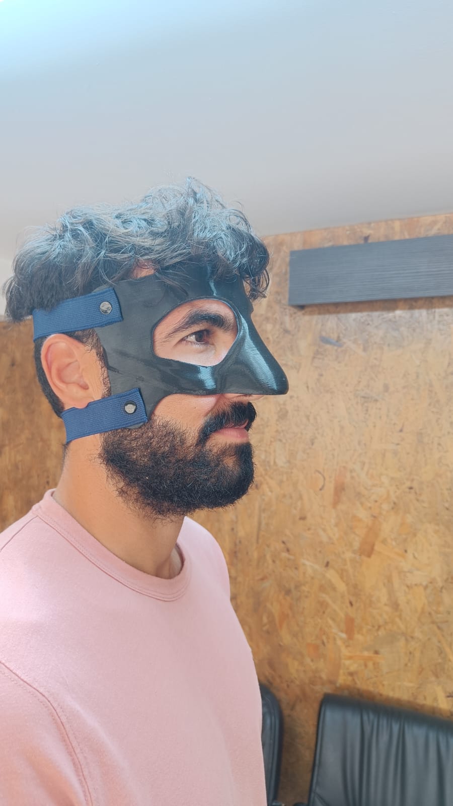 Έτσι έχει αρίστη εφαρμογή στο πρόσωπο του αθλητή, είναι ελαφριά κατασκευή, οπότε δεν επηρεάζει τον αθλητή στην προπόνηση και στον αγώνα. Είναι ανθεκτική και με εύκολη τοποθέτηση.
