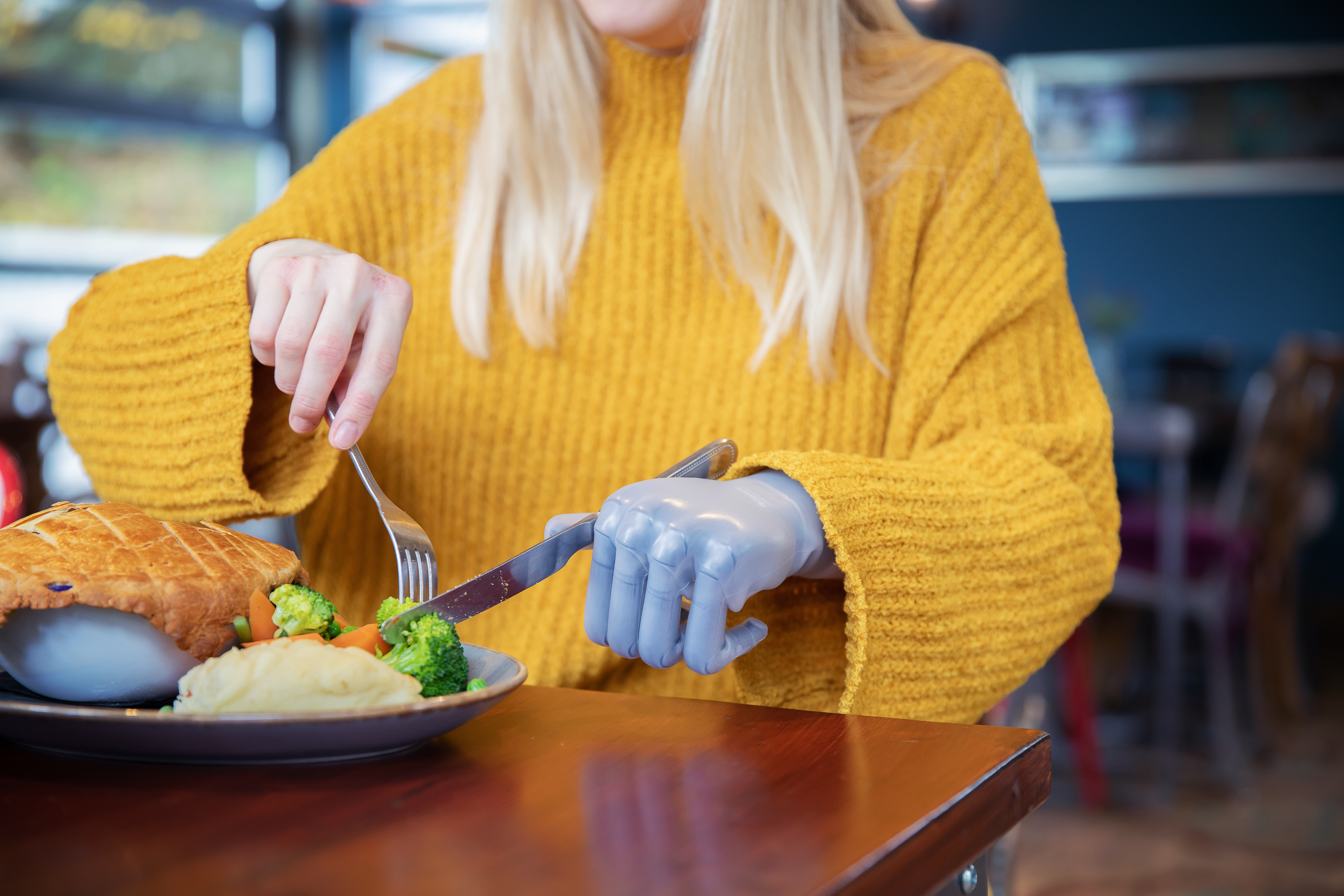 Αγκώνας, καρπός και δάκτυλα μπορούν να κινηθούν σε κάμψη και έκταση, είτε χειροκίνητα (μηχανικά) με ιμάντες που εφαρμόζουν στο σώμα ή ηλεκτρονικά εφαρμόζοντας μέσα στην θήκη ειδικούς αισθητήρες που παίρνουν σήμα από τους μυς.