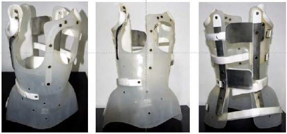 Ειδικά εξωτερικά στηρίγματα που αποτρέπουν την πρόσθετη καμπή της σπονδυλικής στήλης, και στη πλειονότητα θα αποκαταστήσουν τη σπονδυλική στήλη στην ευθεία. Τα στηρίγματα χρησιμοποιούνται ενώ το παιδί μεγαλώνει. Κατά τη διάρκεια χρήσης του κηδεμόνα, τα παιδιά είναι σε θέση να συμμετέχουν σε πολλές δραστηριότητες. Οι κηδεμόνες Boston και Chêneau Brace είναι παραδείγματα δύο τύπων συντηρητικής αγωγής.